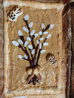 Wiadomo, że przy dwójce małych szkrabów z wolnym czasem może być ciężko, dlatego jest to mazurek błyskawiczny. Całość przygotowania wraz ze zdobieniem zajęła mi niecałe pół godziny, a efekt końcowy jest niczego sobie.