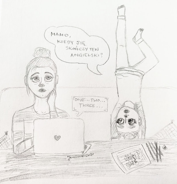 Niestety w obecnej sytuacji zajęcia przeniosły się do internetu i nasze ukochane, zdolne, aczkolwiek nad wyraz hiperaktywne i roztrzepane dziecko trzeba było dostosować do nowej sytuacji.