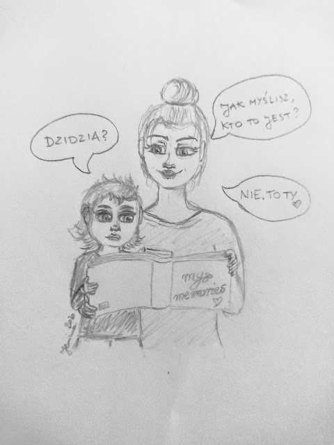 Tak było jeszcze w zeszłym roku. Teraz już Starszą nie tak łatwo podpuścić, pytając o to kogo widzi na zdjęciu. Przeważnie pierwsza odpowiedź brzmi: ‘To ja!’ 😉