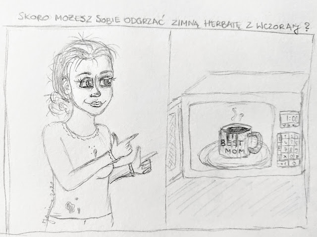 Że o możliwości wypicia świeżo zaparzonej i wciąż gorącej herbaty nie wspomnę, bo w ciągu ostatniego czasu stało się to wyjątkowym przywilejem. Na szczęście zawsze jest trik z mikrofalówką 😉